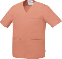 背中にタック入りで動きやすい、かぶりタイプの男女兼用スクラブ。
