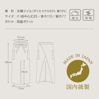 ロングソムリエエプロン スリット入り 腰下エプロン ET550W 国産 撥水 制電 色:黒 総丈:85cm「ポスト投函」送料無料 代引き不可