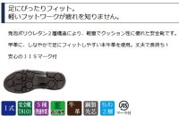 鋼製先芯が足先をしっかりと保護し、JIS規格に準拠しています。
