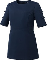 袖に付いたリボンとスリット風デザインが特徴のチュニックタイプ。