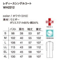 レディースシングルコート自重堂ホワイセルドクターコートWH2212制菌加工ゆうパケット送料無料